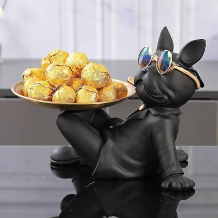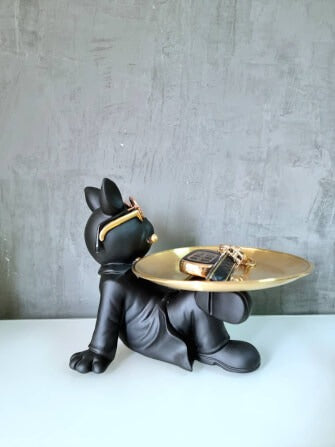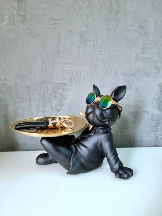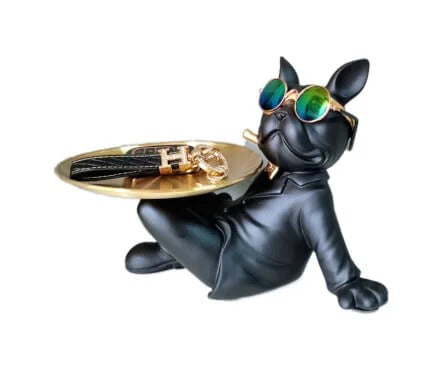 Multifunctional Tray Black Sleeping Bulldog Model