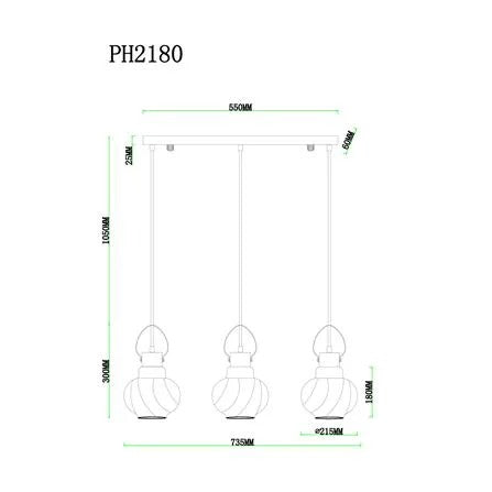 MULTI-PENDANT LAMP PH2180-3 GLASS/METAL BLACK/GOLD 3-LIGHT