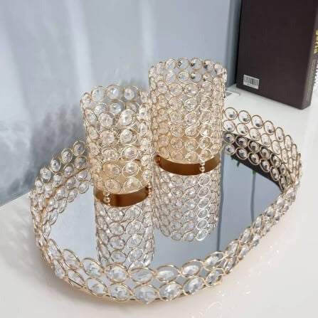 Crystal Glass Tray Set  Product Usage Use it to keep things organized and beautiful. Used to store cosmetic equipment Product Tips Used for decoration on the dressing table. Used for decorating the living room. Cautions - Height (cm) 14 Width...View more