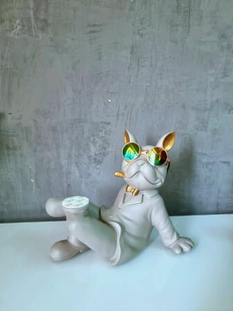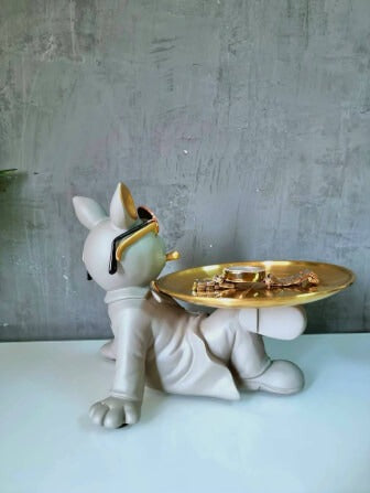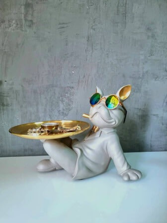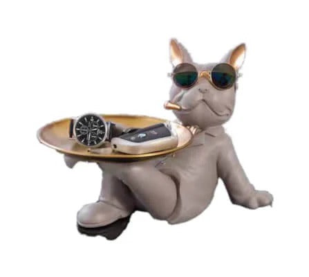 Multifunctional Tray Grey Sleeping Bulldog Model